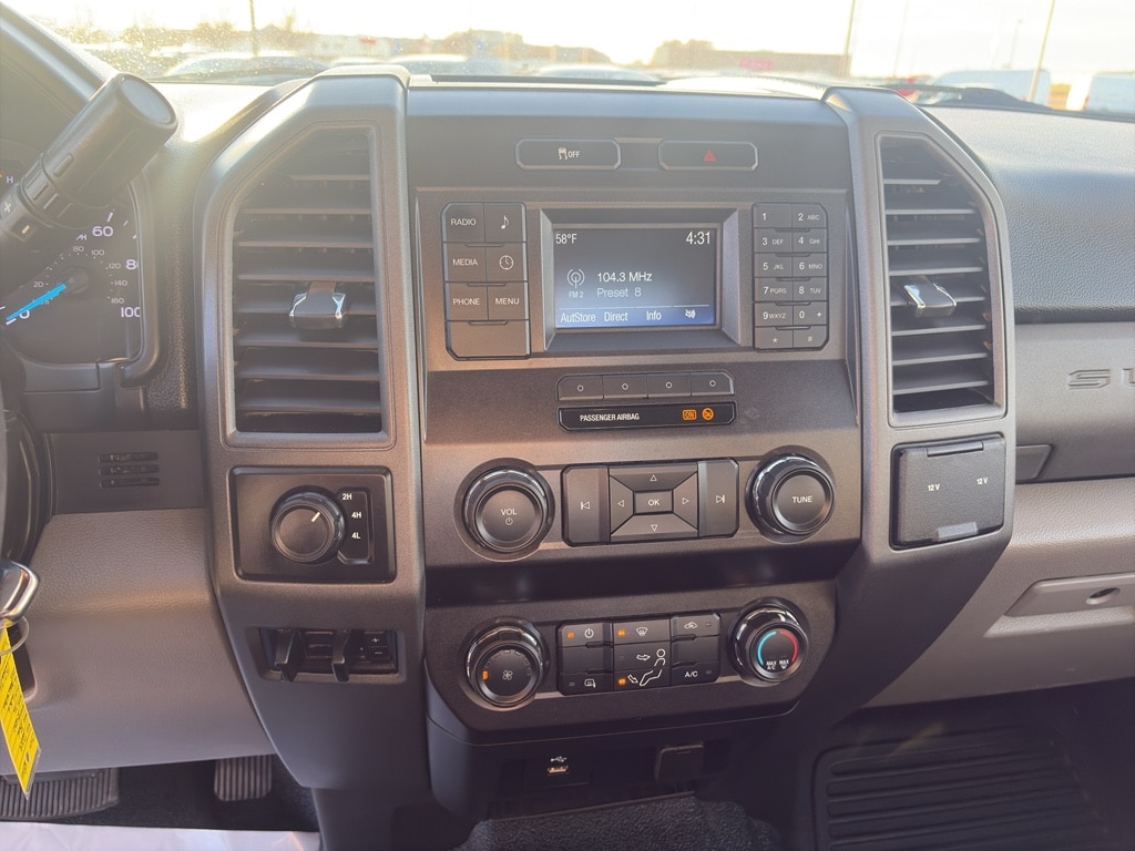 Power Equipment Group: Accessory Delay; Advanced Security Pack; Power Locks; Remote Keyless Entry; Manual Telescoping/folding Trailer Tow Mirrors; Power Front and Rear Seat Windows; Power Tailgate Lock. XL Value Package: Bright Chrome Hub Covers and Center Ornaments; Chrome Front Bumper; 4.2 Center-Stack Screen; Chrome Rear Step Bumper; Steering Wheel-Mounted Cruise Control. XL Decor Group. Order Code 600A: TorqShift-G 6-Speed Automatic Transmission with SelectShift; 17 Argent Painted Steel Wheels; AM/FM Stereo; 6.2L 2-Valve SOHC EFI NA V8 Flex-Fuel Engine; LT245/75Rx17E BSW A/S (4) Tires; 10. 000 Lb Payload Package GVWR; 3.73 Axle Ratio. Platform Running Boards. Spare Tire. Wheel. Carrier and Jack. Steering Wheel-Mounted Cruise Control. Upfitter Switches (6). Heavy-Service Front Suspension Package. Cloth 40/20/40 Split Bench Seat. LED Roof Clearance Lights. **Equipment listed is based on original vehicle build and subject to change. Please confirm the accuracy of the included equipment by calling the dealer prior to purchase.**