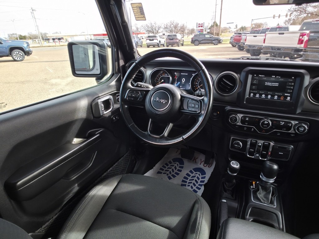 This vehicle offers Android Auto for seamless smartphone integration. This unit offers Automatic Climate Control for personalized comfort. This 2021 Jeep Wrangler has satellite radio capabilities. Apple CarPlay: Seamless smartphone integration for this vehicle - stay connected and entertained on the go! This Jeep Wrangler features a hands-free Bluetooth phone system. This unit is equipped with the latest generation of XM/Sirius Radio. See what's behind you with the back up camera on the Jeep Wrangler. The Jeep Wrangler has four wheel drive capabilities. The Jeep Wrangler projects refinement with a racy metallic gray exterior. It has a V6, 3.6L high output engine. Quickly unlock the vehicle with keyless entry. Set the temperature exactly where you are most comfortable in this unit. The fan speed and temperature will automatically adjust to maintain your preferred zone climate. The high efficiency automatic transmission shifts smoothly and allows you to relax while driving. Electronic Stability Control is one of many advanced safety features on this model.