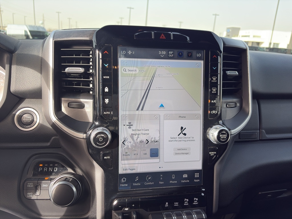 Quick Order Package 2GZ Big Horn. **Equipment listed is based on original vehicle build and subject to change. Please confirm the accuracy of the included equipment by calling the dealer prior to purchase.**Quick Order Package 2GZ Big Horn Night Edition: Black Ram Head Tailgate Badge; 20 X 8.0 Black Painted Aluminum Wheels; Uconnect 5 Navigation with 12.0 Display Radio; Black Headlamp Bezels; Body Color Door Handles; Painted Front Bumper; Painted Rear Bumper; Gloss Black Nostrils/mic Black Grille; LT285/60R20E OWL On/off Road Tires; Black Exterior Truck Badging; Body Color Grille Surround; Black Interior Accents; Black Tail Lamp Bezels; ParkSense Front/rear Park Assist System; Black Ram Head Tailgate Badge; 20 X 8.0 Black Painted Aluminum Wheels; Uconnect 5 Navigation with 12.0 Display Radio; Black Headlamp Bezels; Body Color Door Handles; Painted Front Bumper; Painted Rear Bumper; Gloss Black Nostrils/mic Black Grille; LT285/60R20E OWL On/off Road Tires; Black Exterior Truck Badging; Body Color Grille Surround; Black Interior Accents; Black Tail Lamp Bezels; ParkSense Front/rear Park Assist System; Black Ram Head Tailgate Badge; 20 X 8.0 Black Painted Aluminum Wheels; Black Headlamp Bezels; Body Color Door Handles; Painted Front Bumper; Painted Rear Bumper; Gloss Black Nostrils/mic Black Grille; LT285/60R20E OWL On/off Road Tires; Black Exterior Truck Badging; Body Color Grille Surround; Black Interior Accents; Black Tail Lamp Bezels; ParkSense Front/rear Park Assist System; Black Ram Head Tailgate Badge; 20 X 8.0 Black Painted Aluminum Wheels; Black Headlamp Bezels; Body Color Door Handles; Painted Front Bumper; Painted Rear Bumper; Gloss Black Nostrils/mic Black Grille; LT285/60R20E OWL On/off Road Tires; Black Exterior Truck Badging; Body Color Grille Surround; Black Interior Accents; Black Tail Lamp Bezels; ParkSense Front/rear Park Assist System Bed Utility Group: MOPAR Spray in Bedliner; MOPAR Deployable Bed Step; LED Bed Lighting Level 1 Equipment Group: Google Android Auto; SiriusXM Radio Service; Bluetooth Handsfree Phone and Audio; Integrated Center Stack Radio; For Details Visit DriveUconnect.com; For More Info Call 800-643-2112; Leather Wrapped Steering Wheel; Rear Dome with On/off Switch Lamp; Front Fog Lamps; Integrated Voice Command with Bluetooth; Connectivity - US/Canada; Premium Cloth 40/20/40 Bench Seat; Glove Box Lamp; Auto Power-Folding Mirrors; Footwell Courtesy Lamp; 4G LTE Wi-Fi Hot Spot; GPS Antenna Input; Exterior Mirrors with Heating Element; Global Telematics Box Module; Mirror Running Lights; Uconnect 5 W Radio with 8.4 Display; 8.4 Touchscreen Display; Foam Bottle Insert (door Trim Panel); Black Exterior Mirrors; 18 X 8.0 Polished Aluminum Wheels; Apple CarPlay; Big Horn Instrument Panel Badge; Power Adjustable Convex Aux Mirrors; Forward and Reverse Utility Lights; Locking Lower Glove Box; Selectable Tire Fill Alert; SiriusXM Satellite Radio; Power Heated Fold Telescope Mirrors; Exterior Mirrors with Supplemental Signals; Steering Wheel Mounted Audio Controls; Exterior Mirrors Courtesy Lamps; Dual Glove Boxes; Center Hub; Power Adjust Mirrors; 2nd Row in Floor Storage Bins; Power Telescoping Mirrors Protection Group: Tow Hooks; Transfer Case Skid Plate Shield; Tow Hooks; Transfer Case Skid Plate Shield; Tow Hooks; Transfer Case Skid Plate Shield